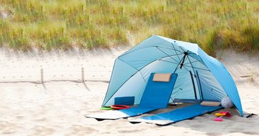 Considering the fact that the weather by the ocean can become unpredictable at times, you should choose a beach umbrella that offers you a better experience. Not only it can protect you from harmful sun ray, but also have a large comfortable area for you to relax. Combined with a beach camping chair, you can easily enjoy a clear blue sky, fine white sand, and o a great beachfront view.